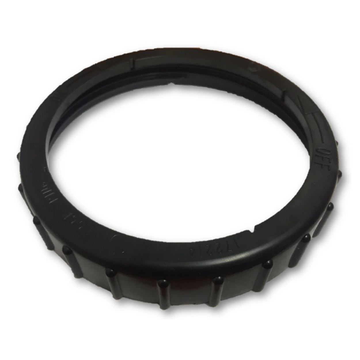 Top of the locking ring is marked with the following: arrow pointing left and OFF, 172214, LOCK RING, ON and arrow pointing right.